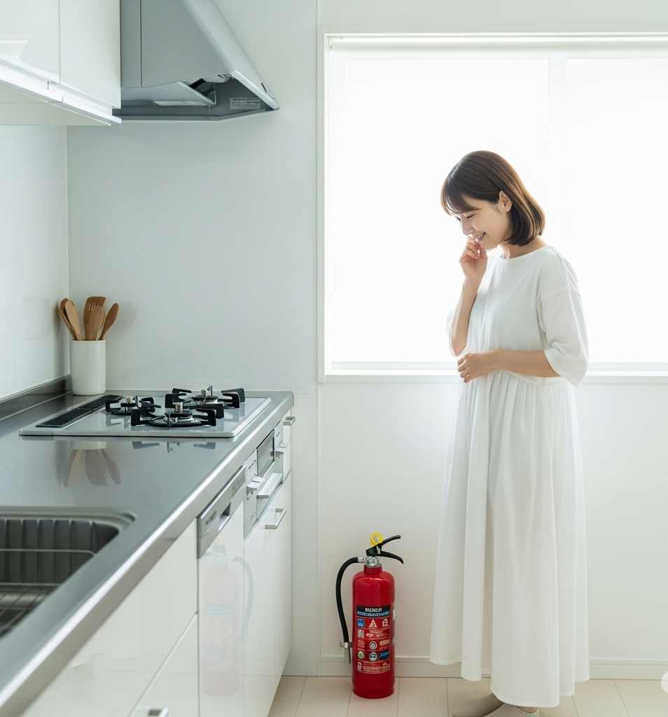 万が一、キッチンで火災が発生してしまったら? 初期消火の成否が、被害の大きさを大きく左右します。焦って水をかけたり、むやみに窓を開けたりすると、かえって火勢を強めてしまう可能性があります。だからこそ、いざという時のために消火器の設置と、その使い方を知っておくことが不可欠です。