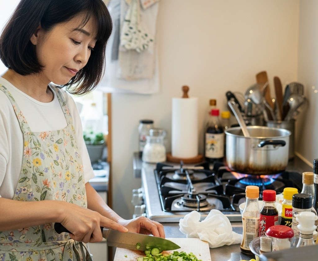 コンロ周りには、調味料のボトル、油、ペーパータオル、ふきんなど、可燃性のものがたくさんあります。これらが火元に近すぎたり、調理中に袖やタオルが引っかかって倒れたりすることで、思わぬ火災につながることがあります。特にガスコンロの場合、火が直接見えるため意識しやすいですが、IHクッキングヒーターでも、鍋底からの熱が周囲の可燃物に伝わり、発火する危険性があります。