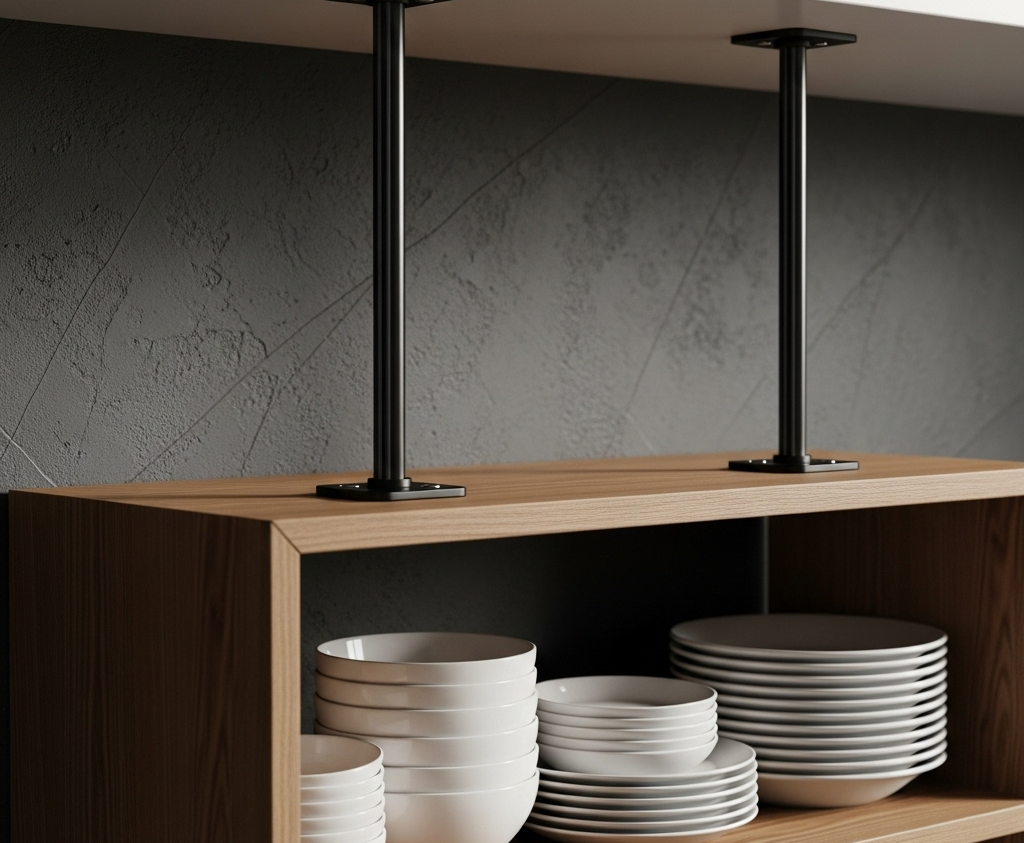 最も手軽で強力な方法の一つ。最近では、デザイン性の高い木目調のものや、圧迫感のないスリムなものが増えています。ポイントは、天井のしっかりした場所(梁など)に設置すること。設置も簡単で、女性一人でも十分可能です。