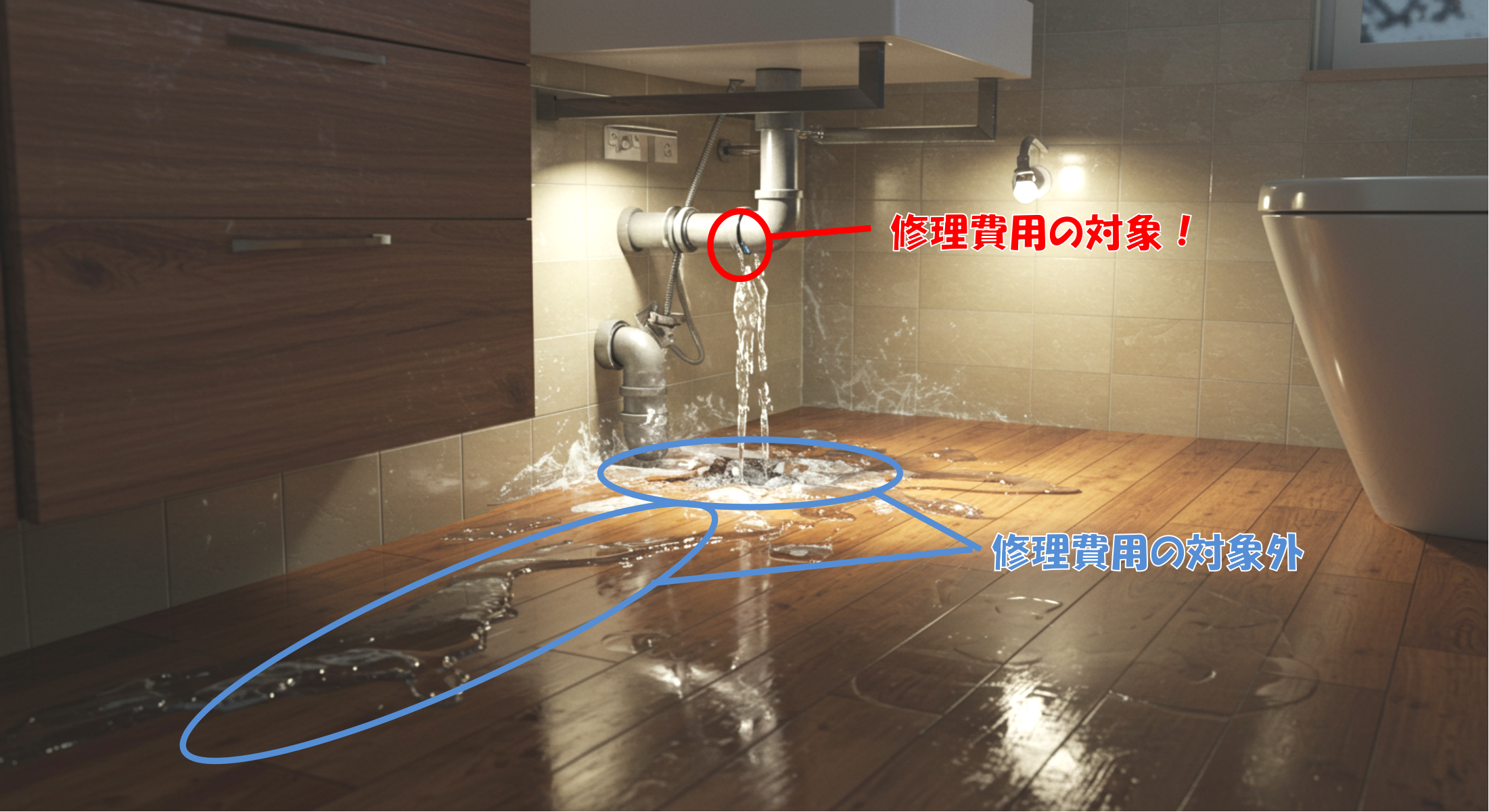 ここが一番の注意点です。破裂した水道管から水が漏れ、床が水浸しになったり、大切な家財が濡れてしまったりした場合、残念ながらその「水濡れ損害」は「破裂・爆発」の保障の対象とはなりません 。
