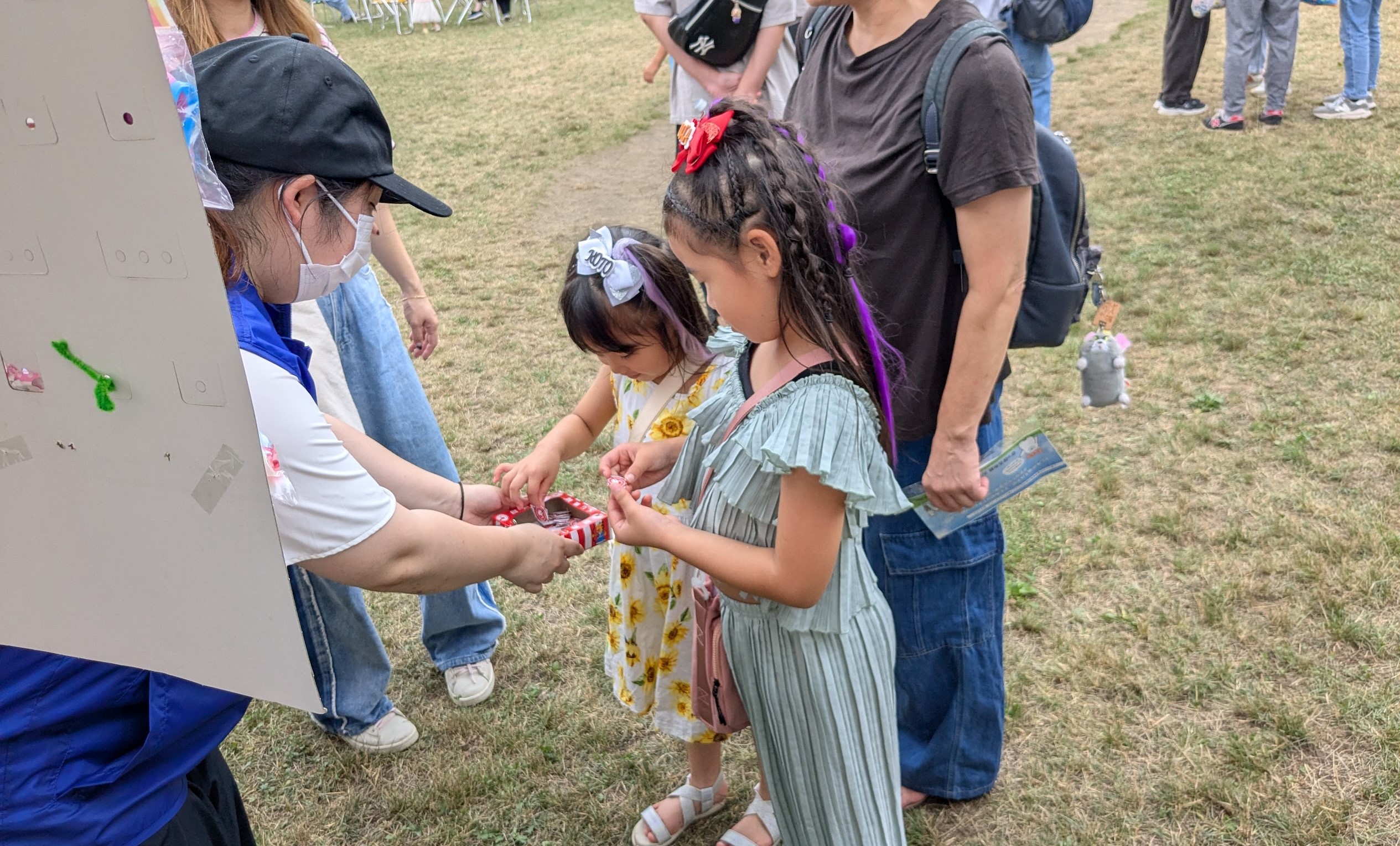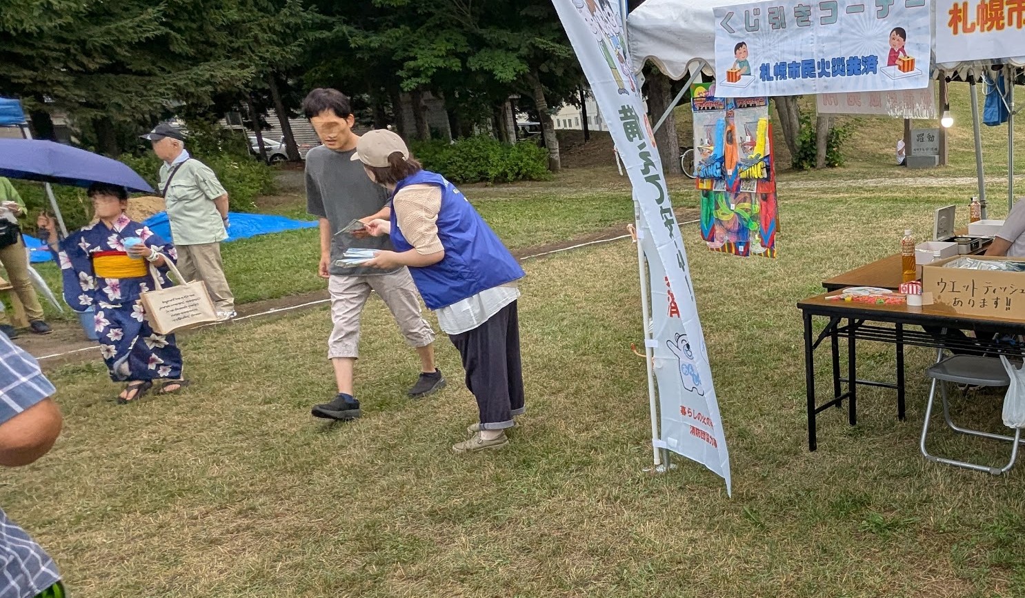 この作戦は見事に的中!夏まつりが始まると、私たちのブースには、くじ引きを目当てにした子どもたちが目を輝かせながら次々と訪れてくれました。お子さんがくじに夢中になっている間に、親御さんへ「よろしければ、どうぞ」と例のウェットティッシュ付きチラシをお渡しすると、驚くほど多くの方が快く受け取ってくださったのです。